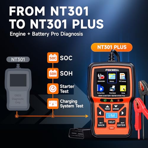 FOXWELL NT301 Plus OBD2 Scanner with 12V Battery Tester, 2 in 1...
